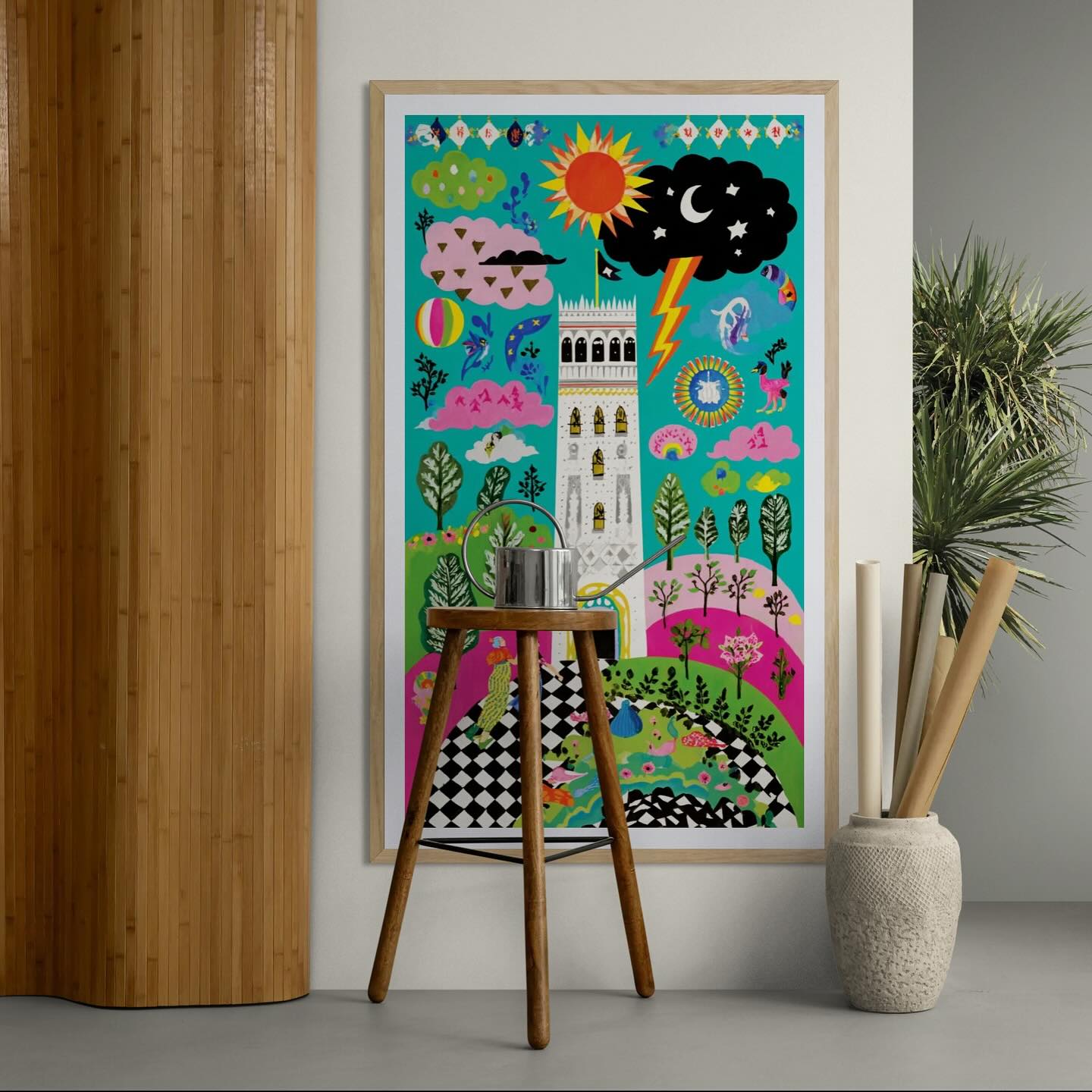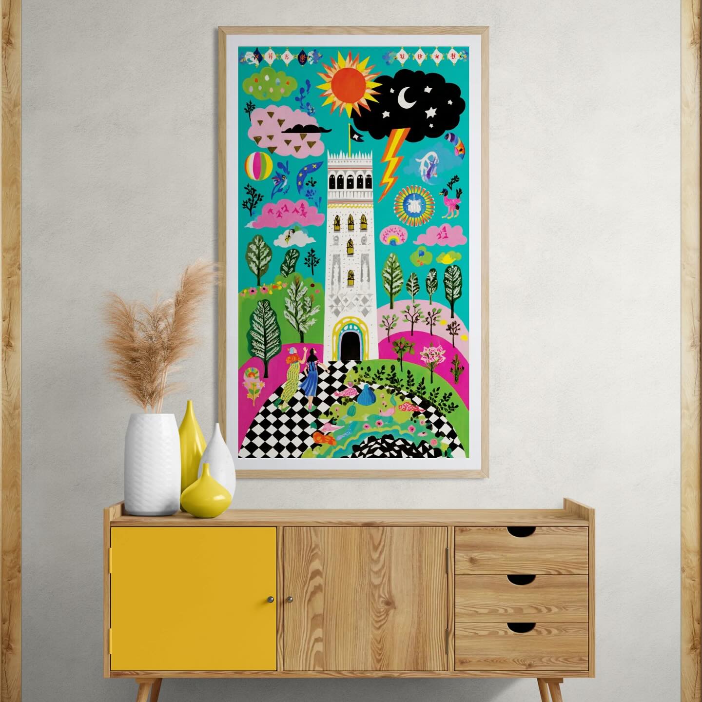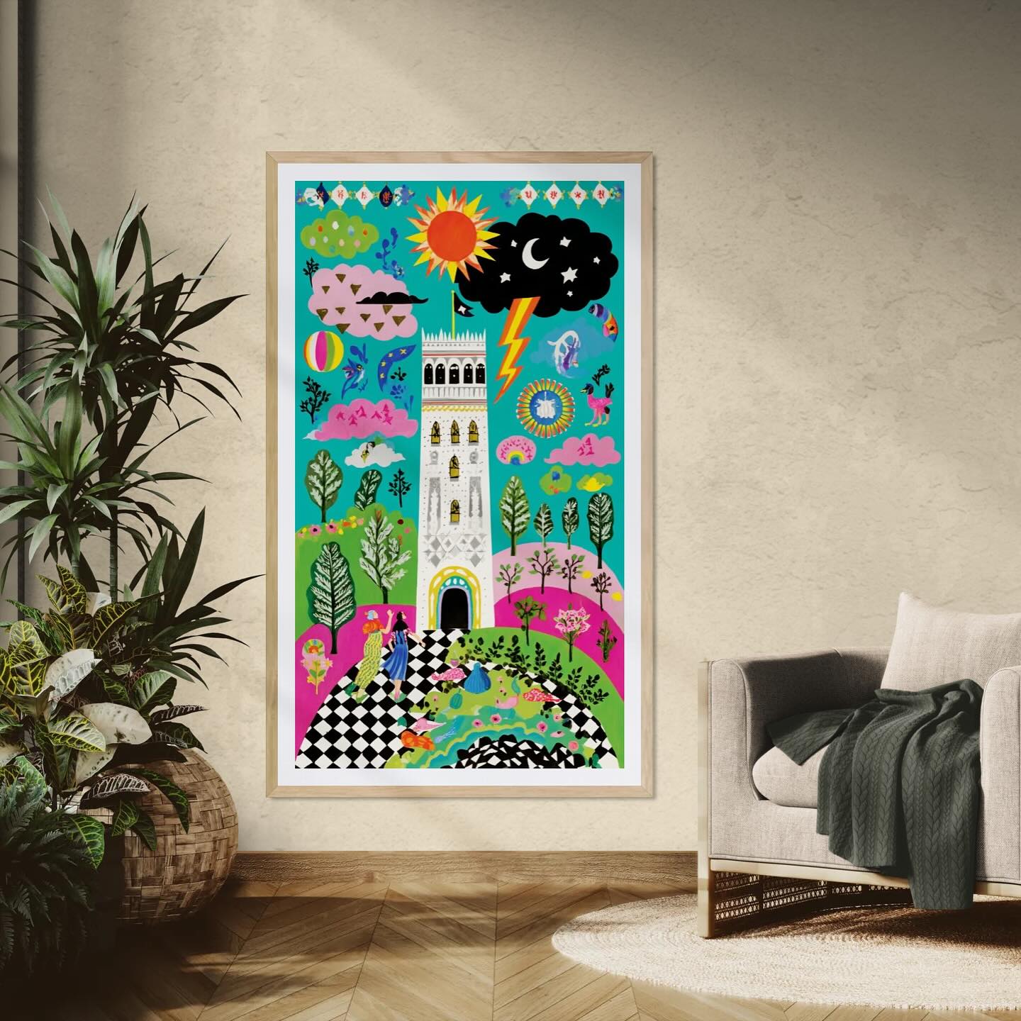 Para obras enmarcadas, sugerimos quitar con cuidado el embalaje protector y colgarla con la ayuda de dos personas, usando clavos resistentes. En el caso de obras de gran tamaño, si es posible, utiliza tornillos y tacos de pared.