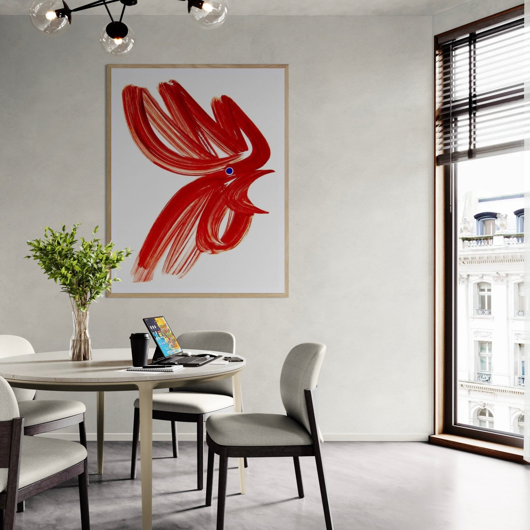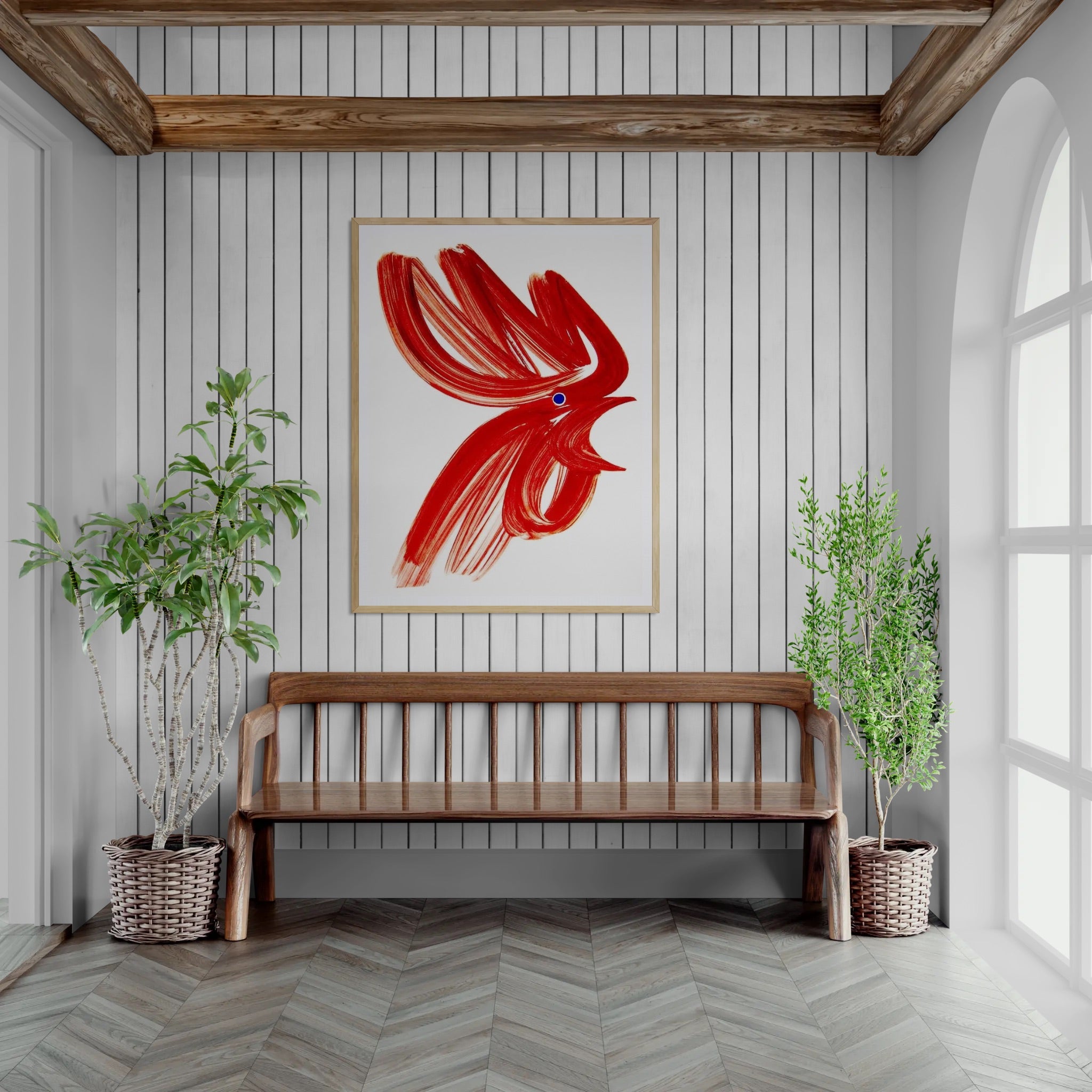 Para obras enmarcadas, sugerimos quitar con cuidado el embalaje protector y colgarla con la ayuda de dos personas, usando clavos resistentes. En el caso de obras de gran tamaño, si es posible, utiliza tornillos y tacos de pared.