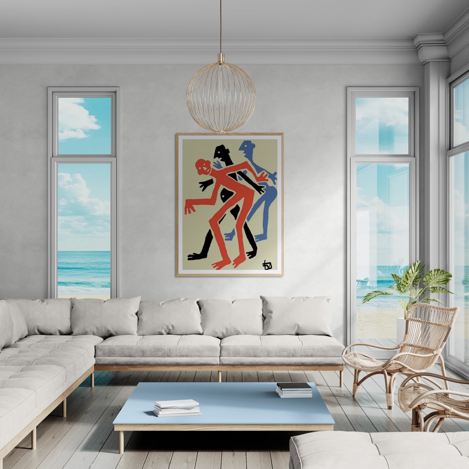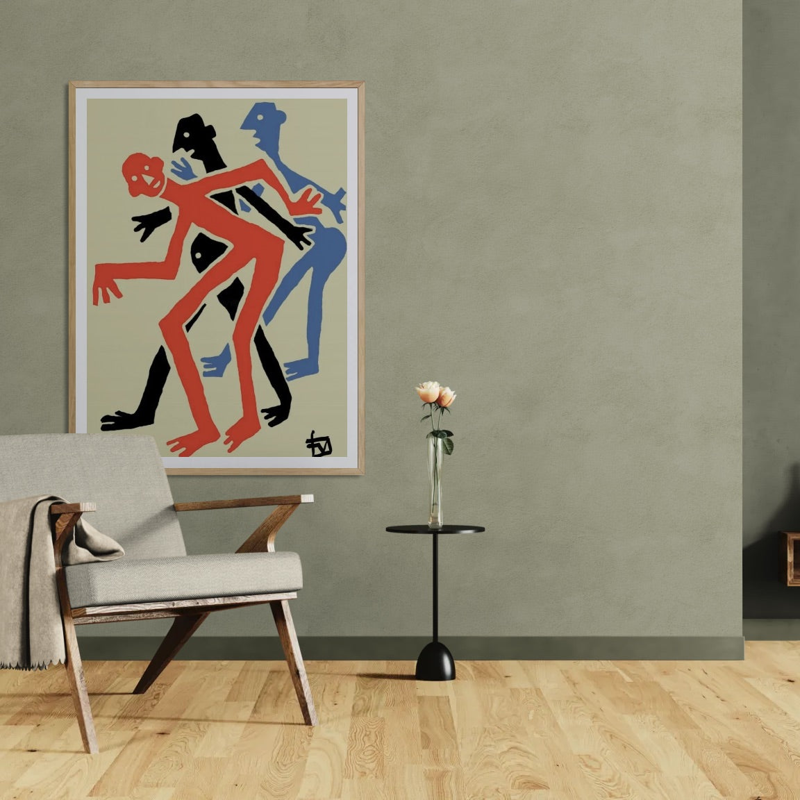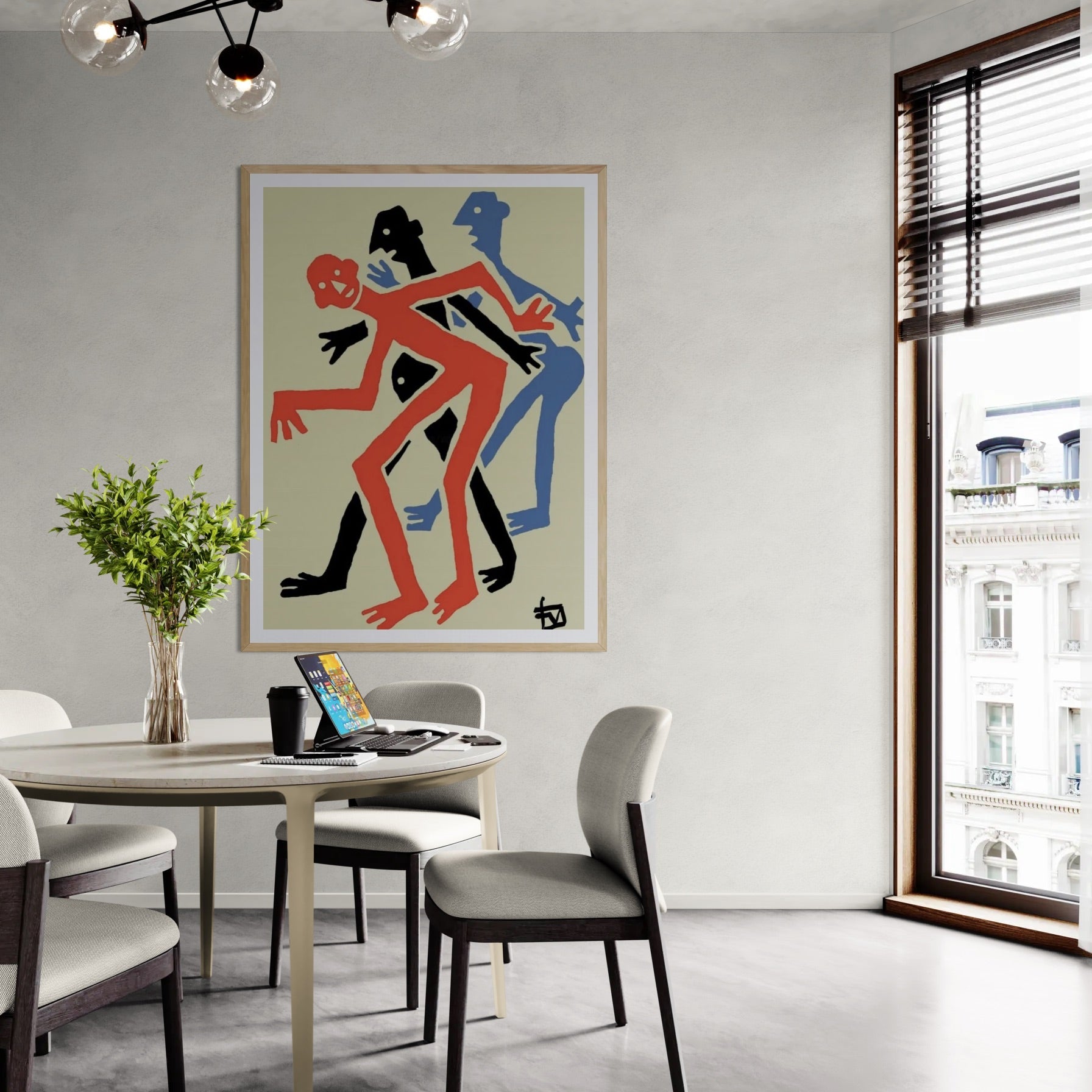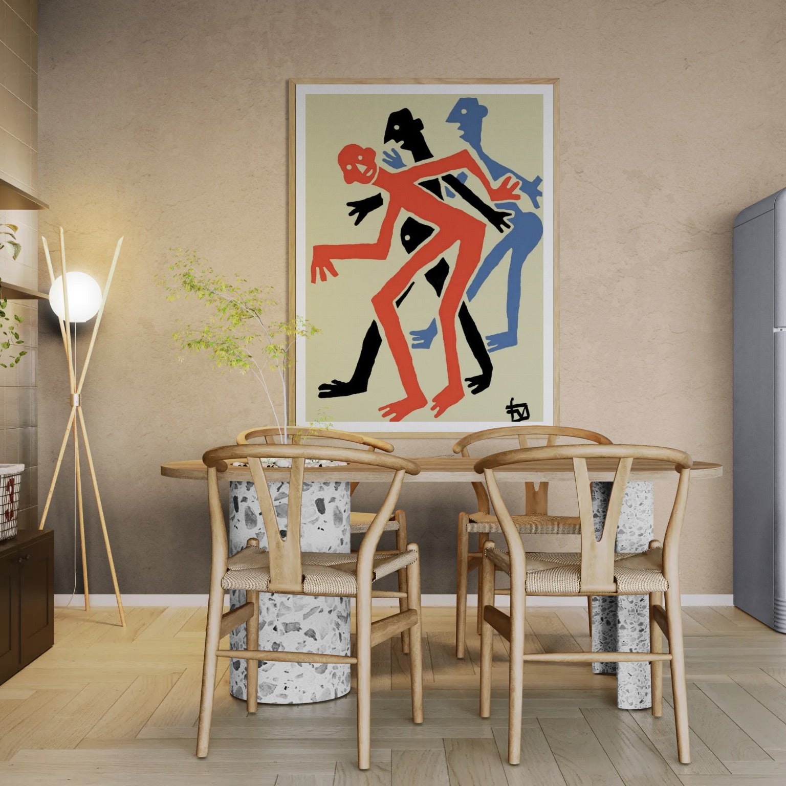 Para obras enmarcadas, sugerimos quitar con cuidado el embalaje protector y colgarla con la ayuda de dos personas, usando clavos resistentes. En el caso de obras de gran tamaño, si es posible, utiliza tornillos y tacos de pared.