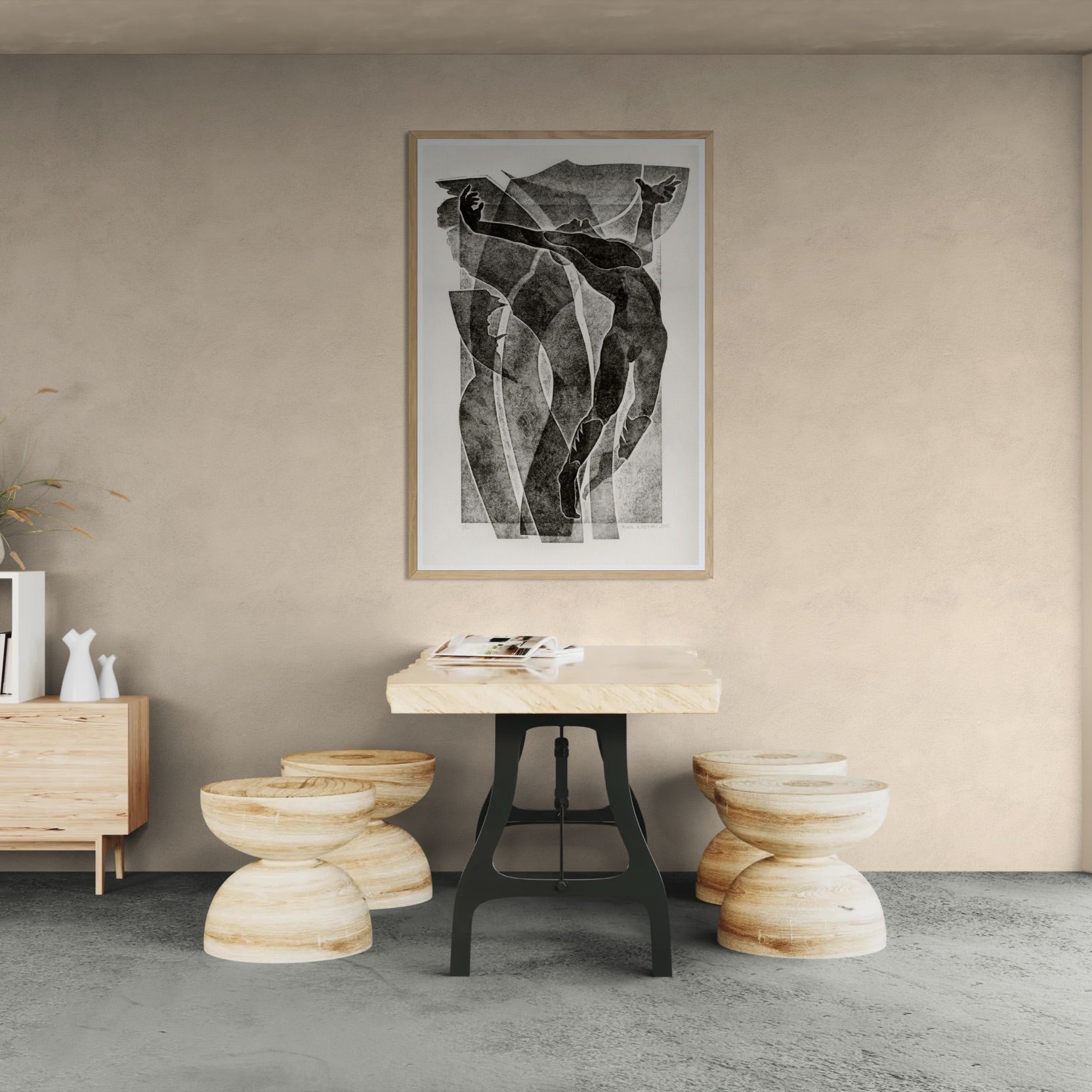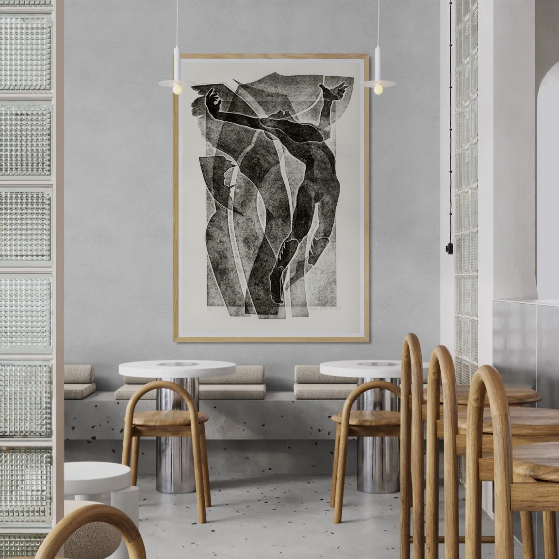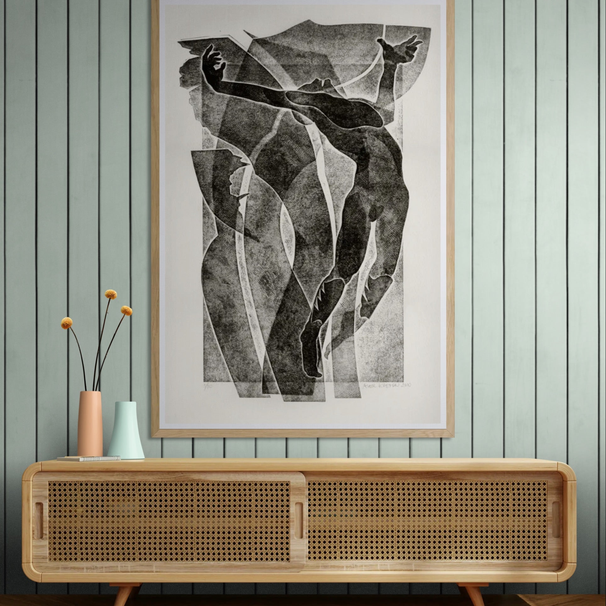 Para obras enmarcadas, sugerimos quitar con cuidado el embalaje protector y colgarla con la ayuda de dos personas, usando clavos resistentes. En el caso de obras de gran tamaño, si es posible, utiliza tornillos y tacos de pared.