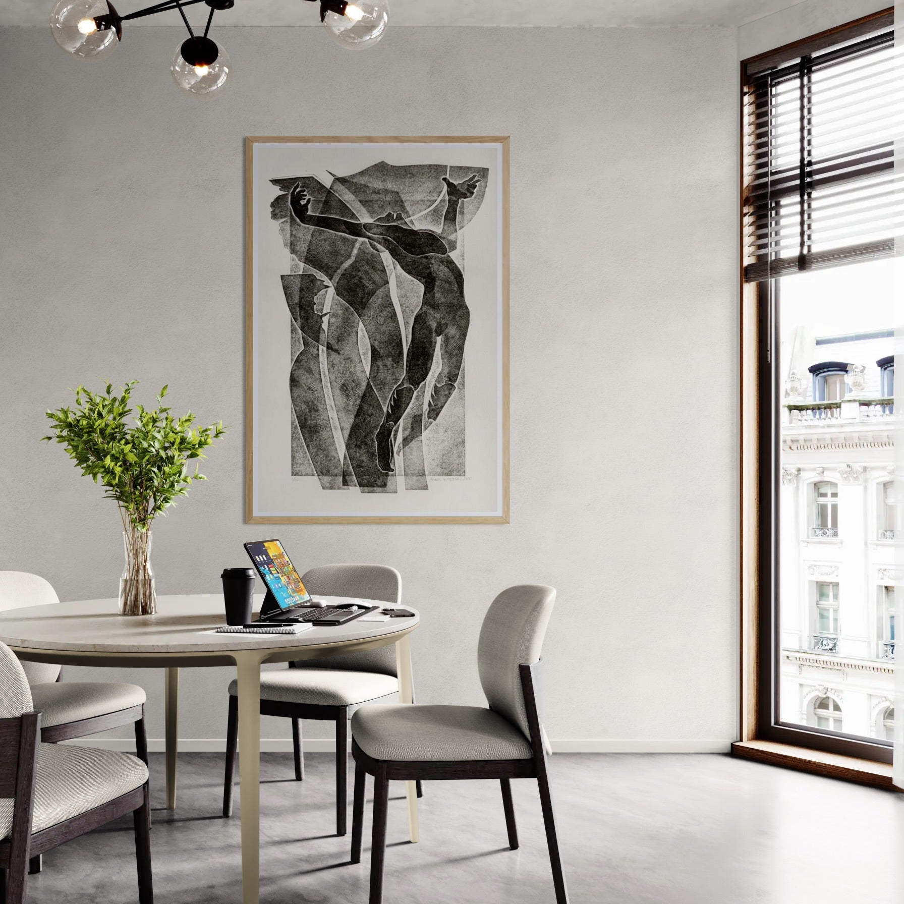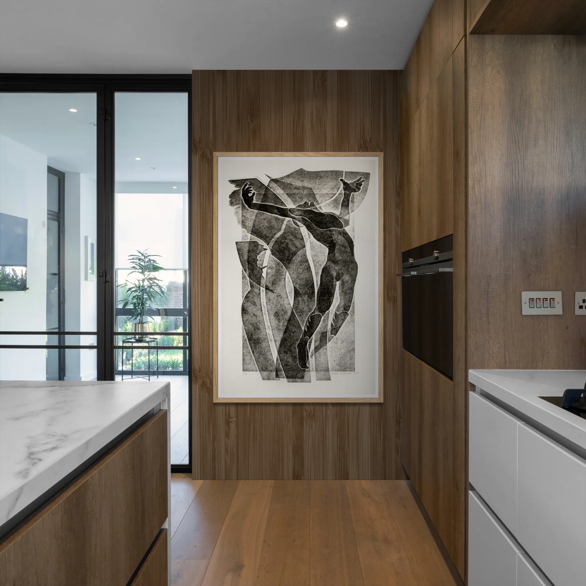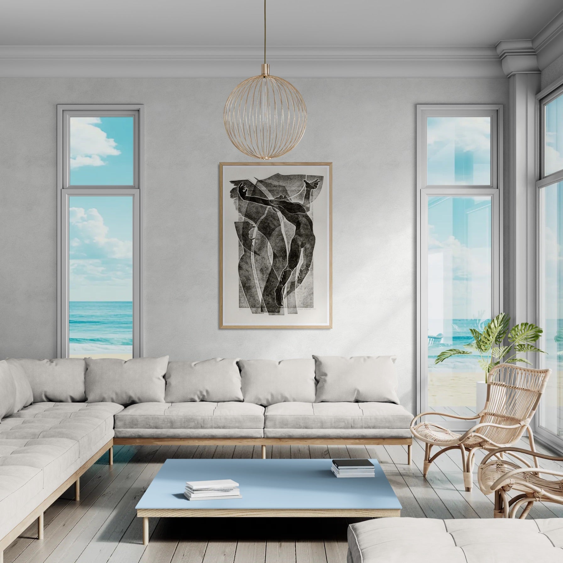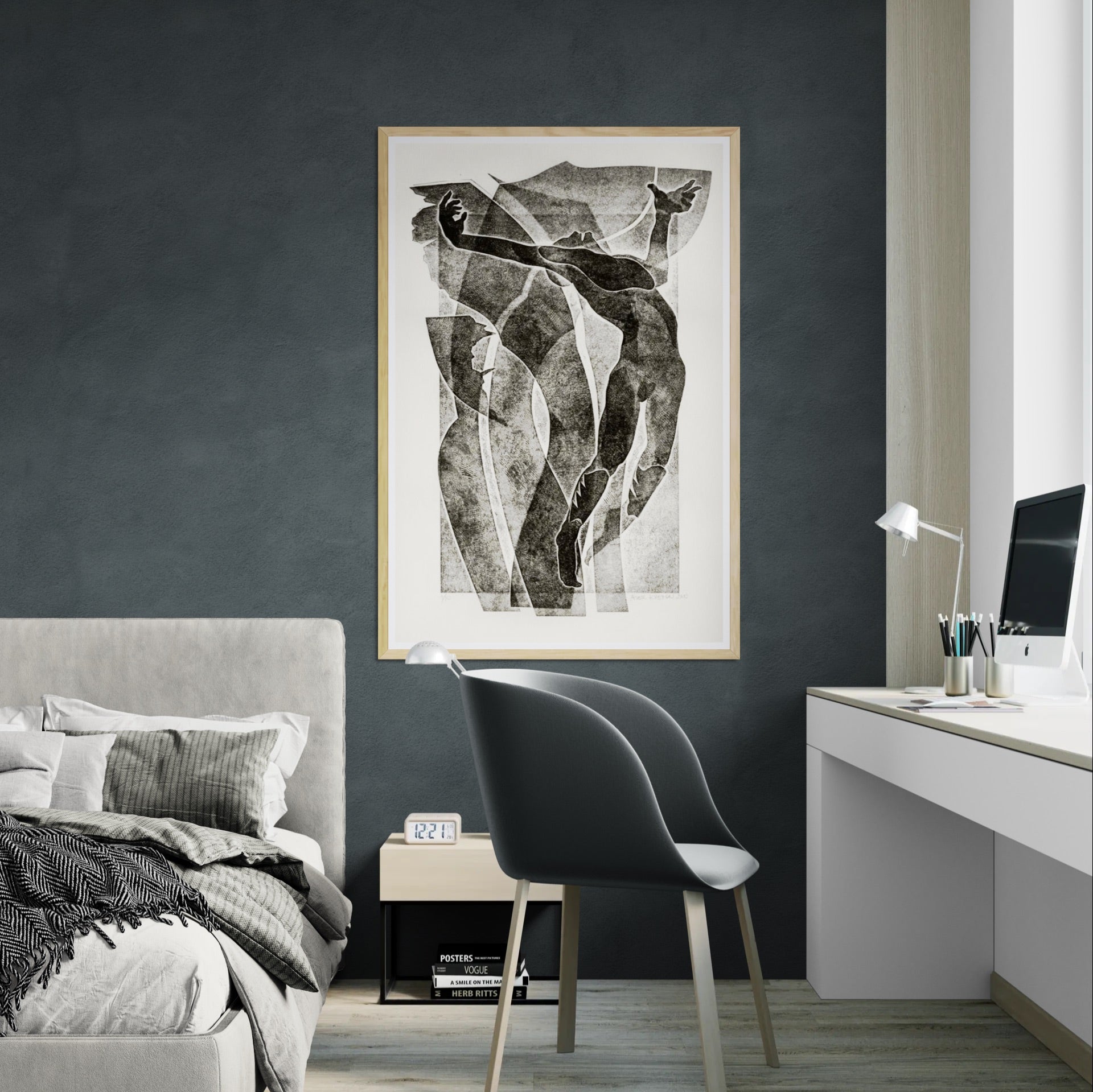 Para obras enmarcadas, sugerimos quitar con cuidado el embalaje protector y colgarla con la ayuda de dos personas, usando clavos resistentes. En el caso de obras de gran tamaño, si es posible, utiliza tornillos y tacos de pared.