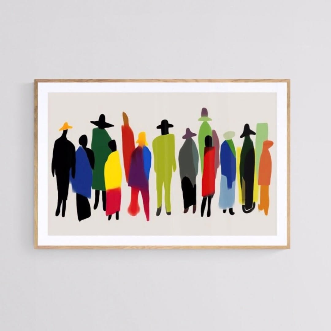 Immigrants People Standing Art Indigenous Shadows in Light Gray background Minimalist Rectangular Picture Wall Art