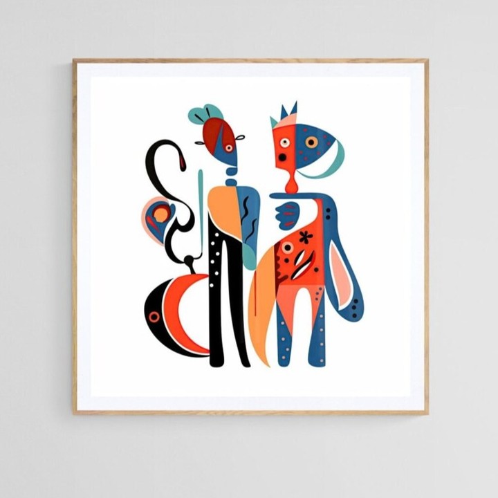 Picasso Style Art Print - Two People Square Large Format Modern Art Gift in White Background.